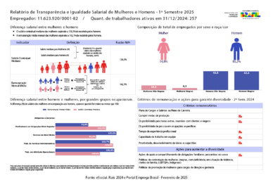 Relatório de Transparência e Igualdade Salarial de Mulheres e Homens 1º Semestre 2025 – CNPJ: 11623920000182
